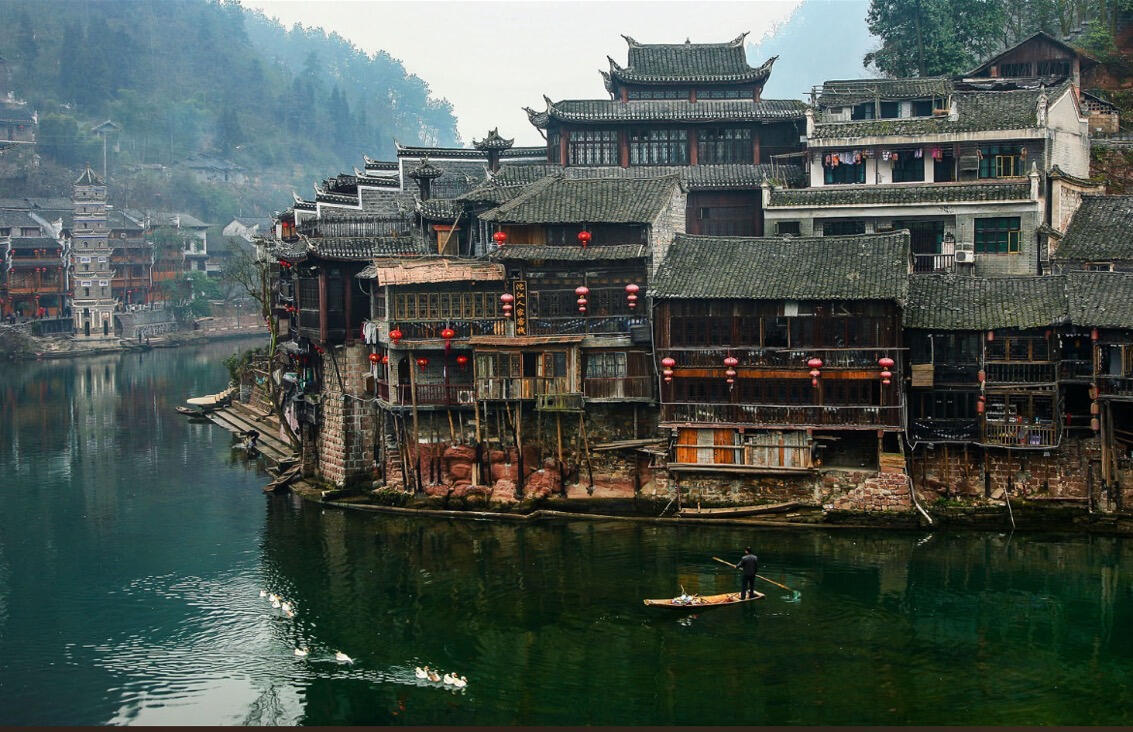 乘一叶扁舟,顺沱江而下,看两岸吊脚楼在光影中流转,感受古城的诗意与宁静。